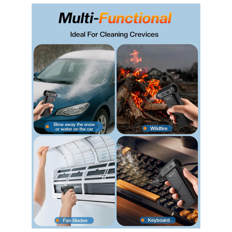 多功能风扇空气除尘器-适用于汽车、房屋、电脑键盘和户外使用的暴力风扇;4速可调式风力干燥、除尘、鼓风和吸气130000RPM