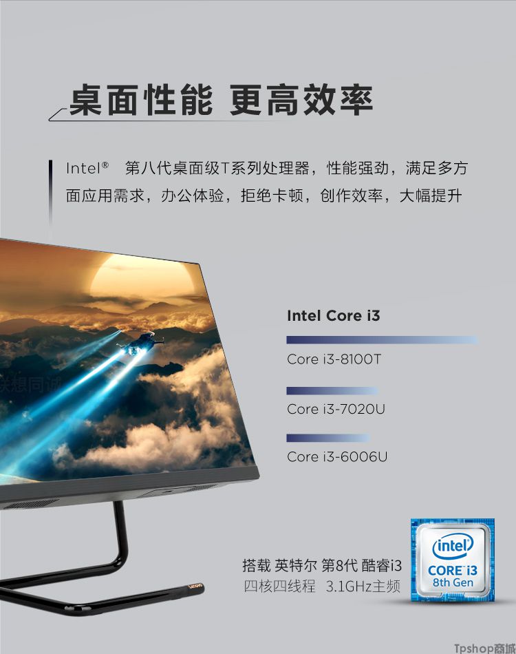 商品名称:TPshop 联想AIO 520C-24 8代i3-8100T 23.8寸IPS屏商务台式一体机电脑